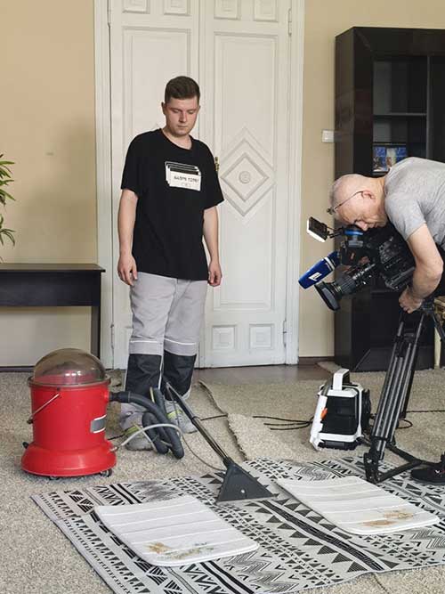 В студии программы наш мастер Виталий провёл наглядную демонстрацию двух методов чистки ковров. Зрители смогли увидеть работу как современного бытового моющего пылесоса, так и профессиональной экстракторной машины.
